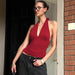 Popular elements: solid color, backless, V-neck, backless, slim fit
